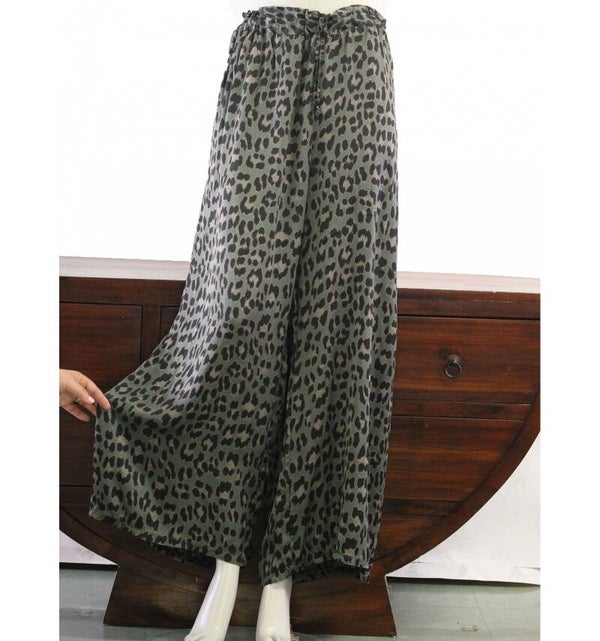 C'Mélodie - GTU (max. 48) - Pant. flare façon satin - 80% visc. / 20% soie - impr. léopard